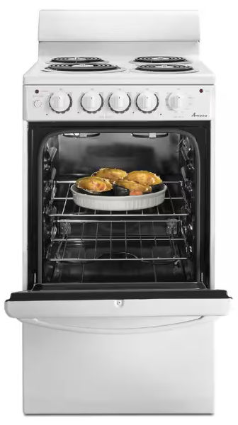 Small spaces are no problem for this Amana 20 in. electric freestanding range. The contemporary styling complements any kitchen design. Match your burner to the size of your pot with one 8 in. and three 6 in. coil elements. Plus, an oven light and oven window make it easy to check on your food without opening the door.