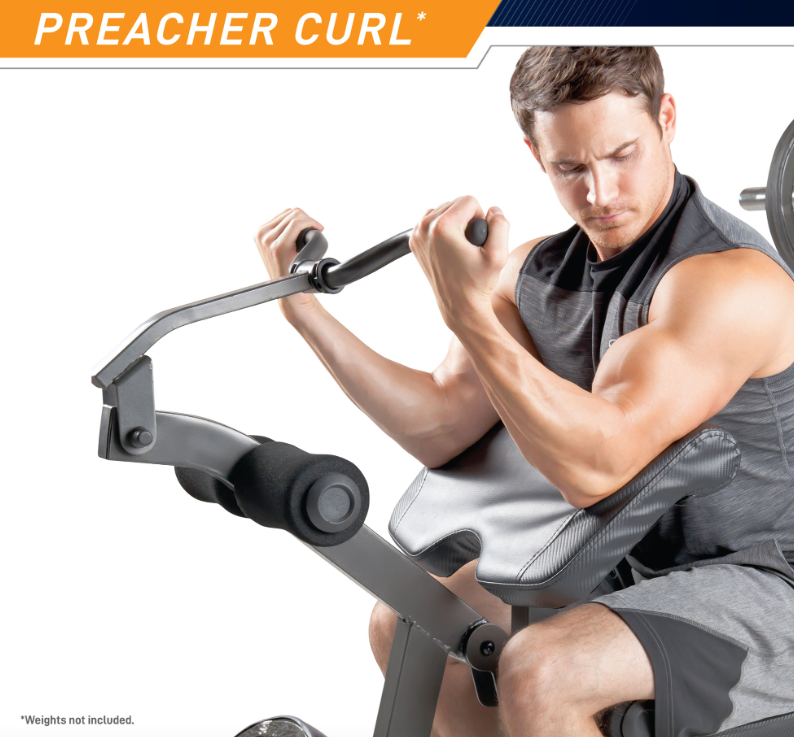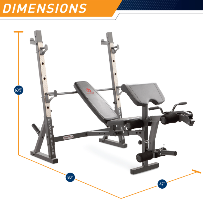 With the heavy-duty Marcy MD-857 Olympic Bench, you can get a full body workout with one piece of equipment. If you plan to lift heavy in your home gym it can deliver with a 300lb max on the bar catches and uprights. It has four different bench positions. Utilizing the four back pad positions allows you to pinpoint specific muscles during your workout. Choose between flat, incline, decline, and upright positions. The adjustable arm curl support pad and arm curl bar make defining your arm muscles more efficient. The seat and back pad operate on a slide track which places you in the exact positions to execute proper military and chest press exercises. The dependable slide track keeps you safe and secure during your intense workouts. The contoured roller pads and dual-function leg developer make sure your legs are kept in the mix as well. One of the unique features of this olympic bench is the inclusion of two bar catches on the rear of the frame which gives you the space and freedom to perform squats. This adjustable weight bench comes with easy-to-follow assembly instructions that will have you enjoying the advantages of this home gym equipment in no time. The durable steel structure and accommodating design give you everything you need to achieve a full body workout.